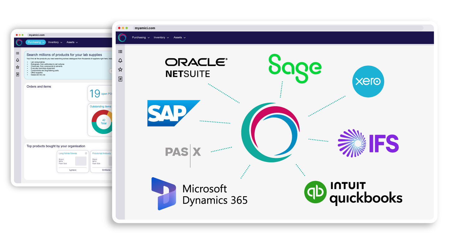 MyAmici slots into your current tech stack – whether that’s SAP, Oracle, Sage, QuickBooks, or something bespoke – to enhance what’s already there. You get the power of intelligent procurement without the pain of implementation. Just seamless connectivity that significantly improves lab ops efficiency.